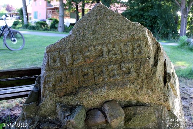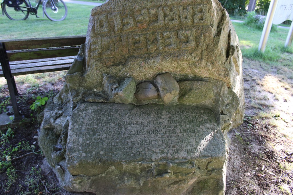 Es handelt sich hierbei um den Gedenkstein „Die Letzten“ auf der Position 32U 595042 5838756 an der Bushaltehaltestelle in der Marktstraße.