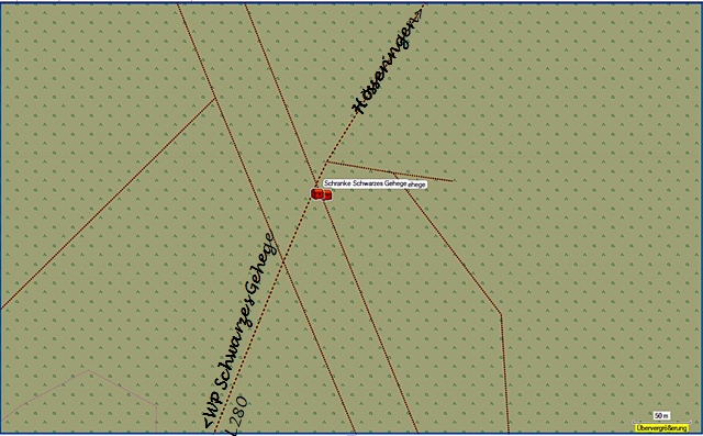 Zum einen um die Überreste der ehemaligen hölzernen Schranke auf den UTM-Position 32 U 592968 5852764 im Verlauf des dortigen Wanderweges.