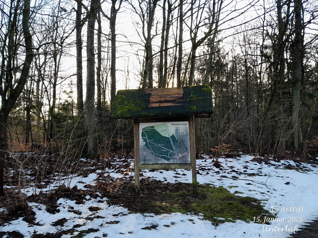 Es handelt sich hierbei um die alte Wanderkarte jetzt ohne Bank auf der Position 32 U 586835 5854752 gegenüber den Parkplatz am Waldrand.