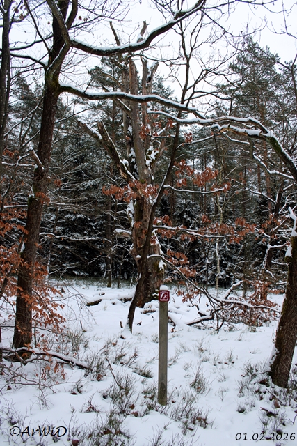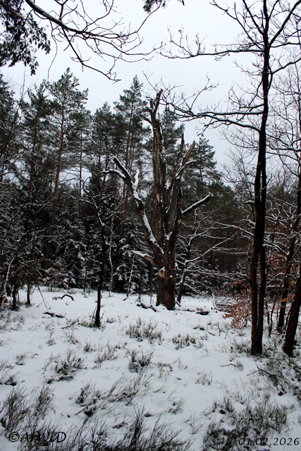 So einen Habitatbaum wir hier auch an den Lichtung mit der Schutzhütte aus dem Jahre 2013 am Rande des ca. 2,2 Kilometer langen Heide Erlebnispfad am Schillohsberg und neben der Station mit dem Mistkäfer auf dem Baumstamm.
