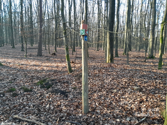 Nachdem ich jetzt im März das abgebrochene Pfahl mit den Schildern wieder frei gelegt wurde und ich mich mit den ehemaligen Rundwegen der ehemaligen Gemeinde wieder neu befasse, ist dieser Abzweig eine interessante Fotostelle.