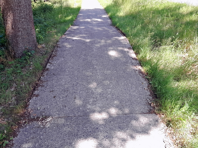 Über einer Baumwurzel haben sich die beiden Betonplatten etwas angehoben und bilden jetzt eine kleine Unebenheit, die sich aber noch gut überfahren läst.