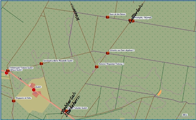 An dieser Kreuzung kommt bzw. geht der Postweg aus bzw. in Richtung Weesen bei Hermannsburg ab.